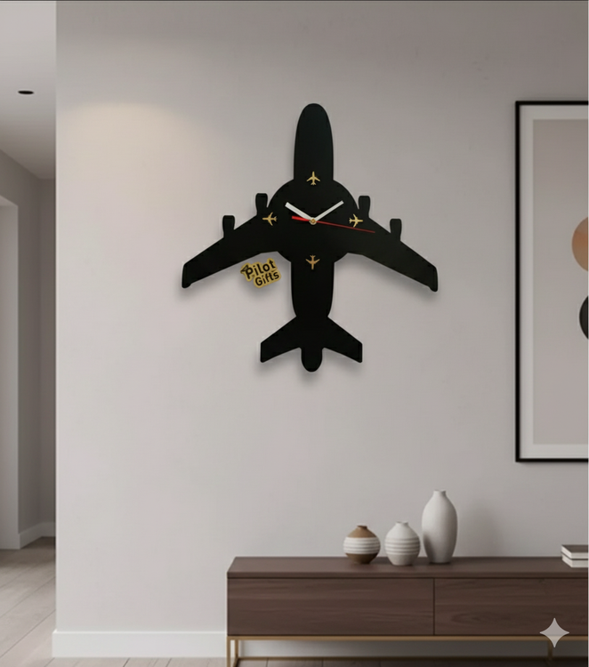 ساعت دیواری طرح هواپیما رنگ مشکی با موتور تایوانی آرامگرد و بدون صدا ساخته شده از ورق چوبی MDF به ضخامت 3 میلیمتر با طول و عرض حدود 42 سانتیمتر جلوه ی زیبایی به دکور منزل شما می دهد.